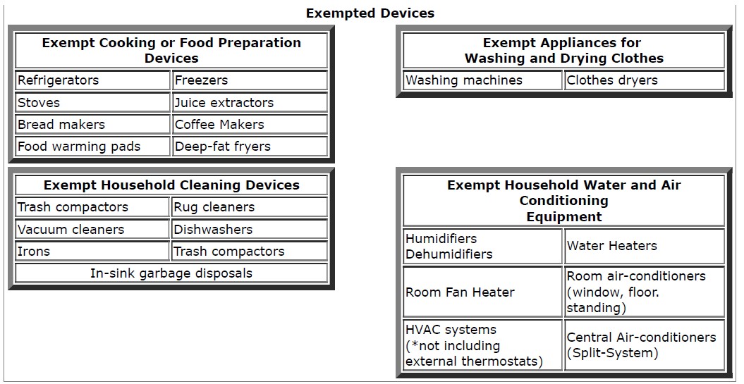- 豁免只是仅仅针对家电功能,其它功能不豁免。例如带有视频教学功能的食物搅拌机,可以豁免食物搅拌功能,不能豁免视频功能。带有无线控制功能的咖啡机,可以豁免咖啡机功能,不能豁免无线功能。
