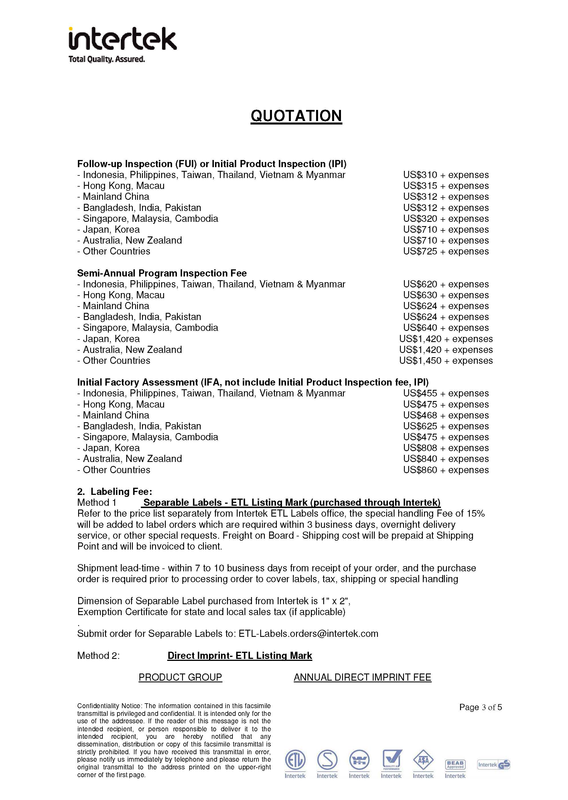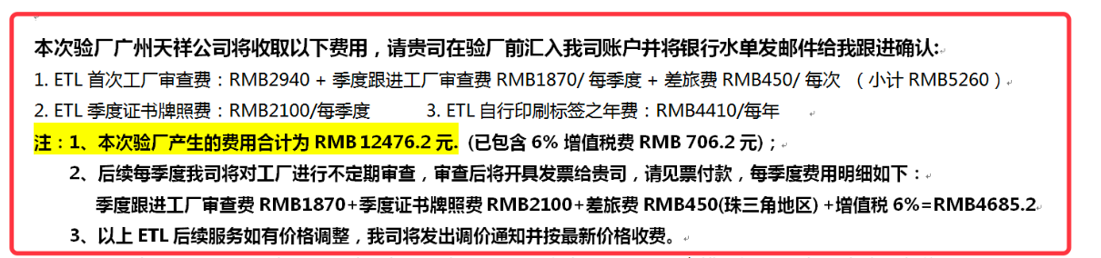 ETL 厂检及要求