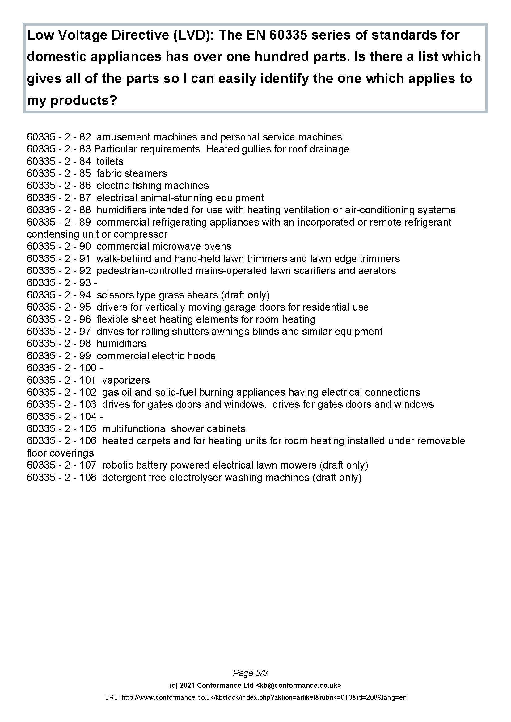 2014年3月 29日,欧盟官方期刊公布了新版本低电压指令2014/35/EU,用以替换原有低电压指令2006/95/EC。新指令2014/35/EU将于2016年4月20日起执行。LVD 的目标为确保低电压设备在使用时的安全性。低电压设备的定义为额定电压为交流电时50到1000伏特间,直流电时75到1500伏特间的电气设备。