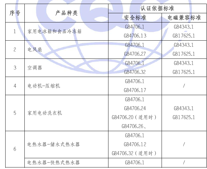 本规则适用于家用和类似用途设备,包括以下产品种类:家用电冰箱和食品冷冻箱;电风扇;空调器;电动机一压缩机;家用电动洗衣机;电热水器;室内加热器;真空吸尘器;皮肤和毛发护理器具;电樊斗;电磁灶;电烤箱(便携式烤架、面包片烘烤器及类似烹调器具);电动食品加工器具(食品加工机(厨房机械));微波炉;电灶、灶台、烤炉和类似器具(驻立式电烤箱、固定式烤架及类似烹调器具);吸油烟机;液体加热器和冷热饮水机;电饭锅;电热毯、电 热垫及类似柔性发热器具。